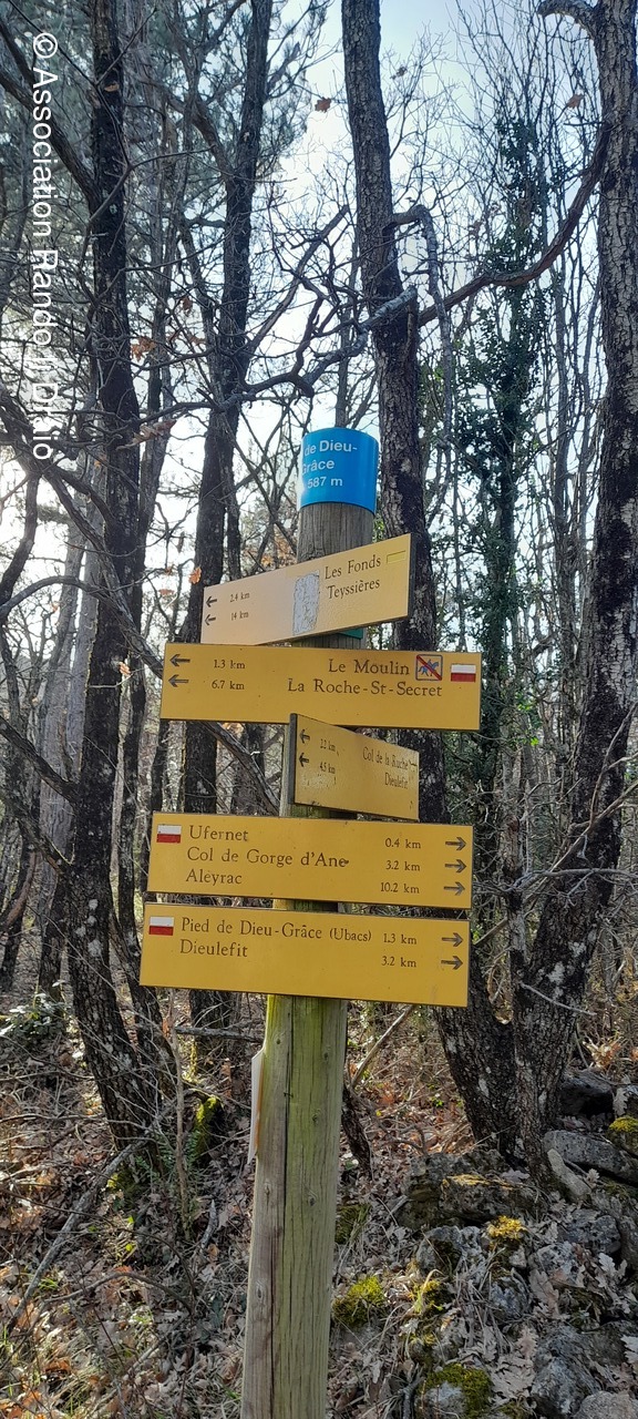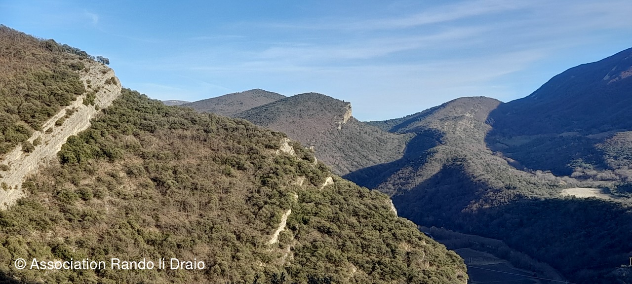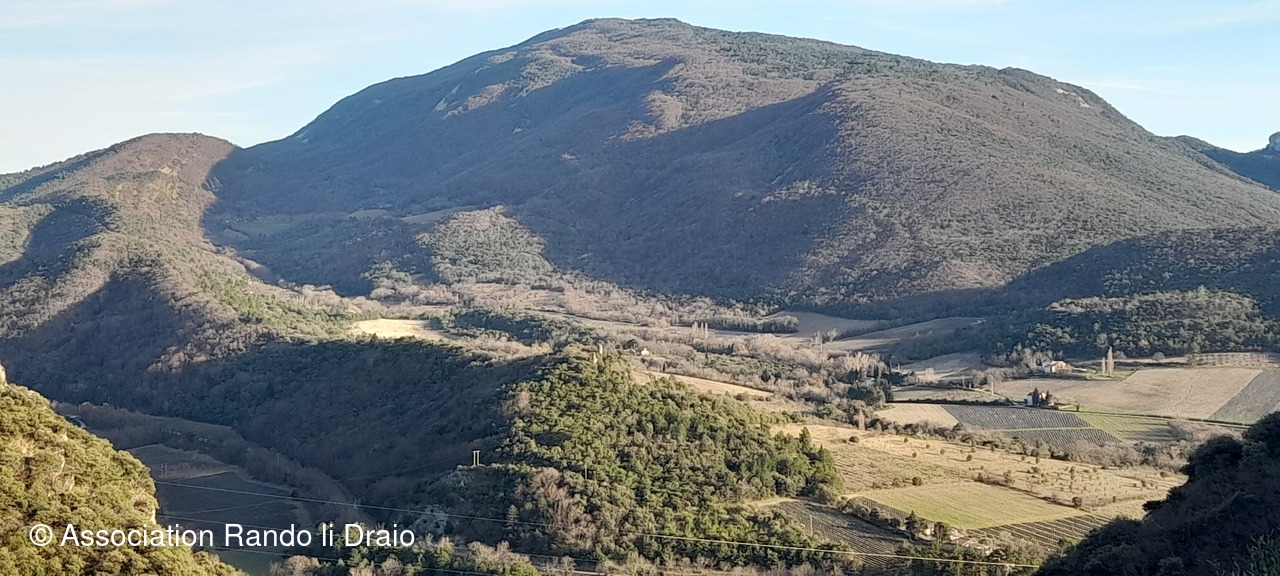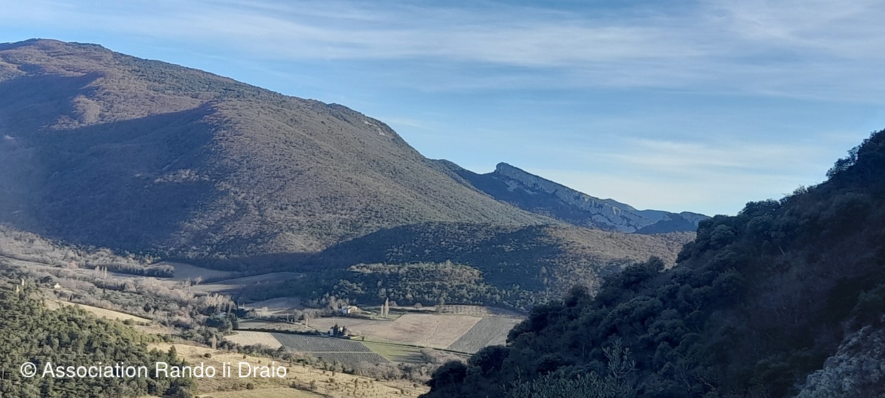 Nous continuons sur la crête de Dieu Grâce d'où nous distinguons, sur le versant nord, Dieulefit et Poêt Laval, sa montagne ainsi que celle de Saint Maurice.